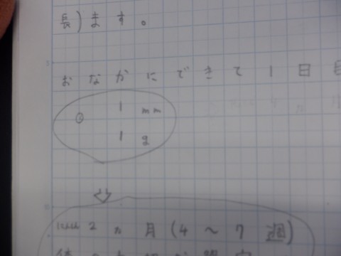 人の赤ちゃんの成長について,受精卵の段階から,大きさや重さの視点で変化をとらえようとしています。