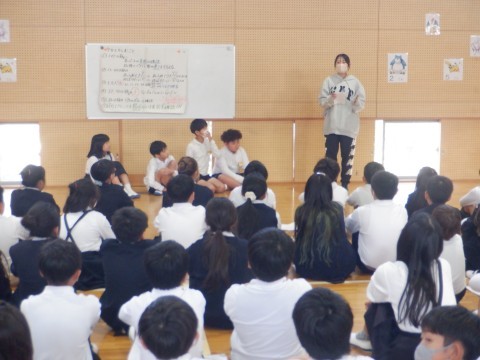 連合音楽会をめざしている5年生の様子です。歌をさらにレベルアップさせるためには,一人残らず全員が気持ちをそろえることが大切だというお話でした。