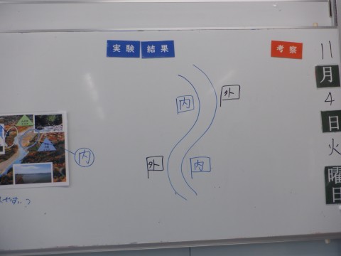 他のチームも順調に実験を進めています。やはり流れの外側が強く削れらるようです。