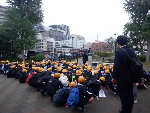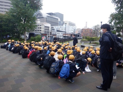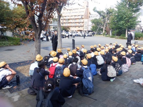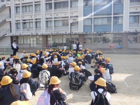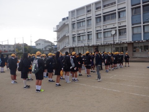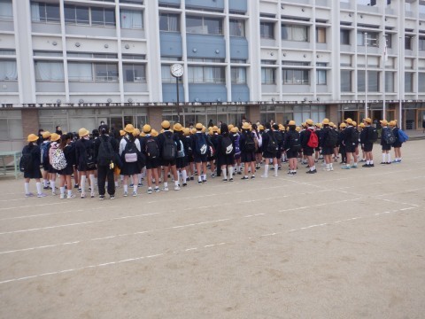学校に着いてからの解散式の様子です。疲れていますが,こうしたこともしっかりやり切ります。会場での合唱は,これまでの成果を発揮したすばらしいものでした。また,行き帰りの歩行,車内でのマナーも立派でした。ここまでのがんばりを,これからに生かしてください。土曜参観の際におうちの方に合唱を聞いていただくことにしています。