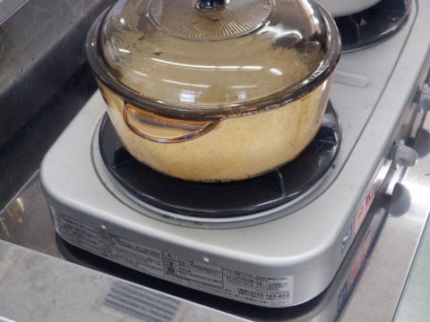 ご飯を炊くのに透明の容器を使っています。炊き上がるようすを観察しています。