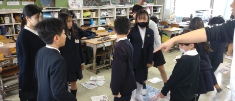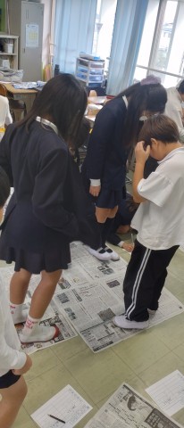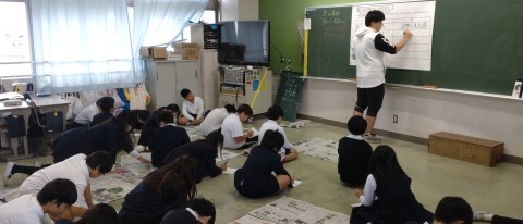 新聞紙の枚数とその上に乗る人数との関係を調べています