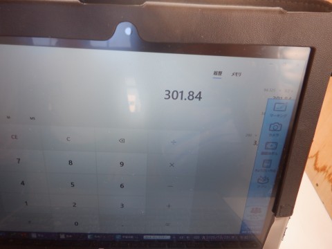 体積を計算しました。34.3×3.2×2.75=301.84となりました。ろうかの体積は301.84立方メートルであることがわかりました。