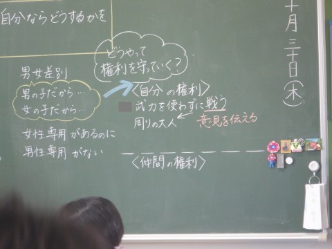 6年 自分の権利が侵されるようなことがあれば,「武器を使わずに戦う」と発言しています。具体的には,自分の思いや考えを言葉で伝えたい とのことでした。