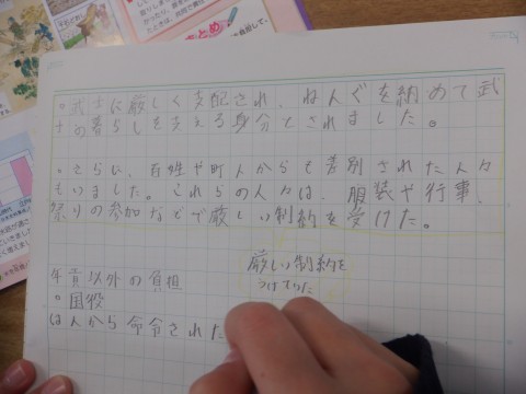 くらしを知るにあたり,当時の人々が身分制度のもとにあったことをまず調べようとしています。