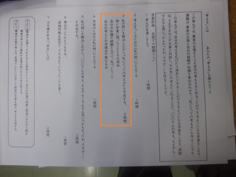 6年国語の学習です。3人の筆者の「考えること」についての文章からその主張を読み取り,自分の経験などと合わせて,各自が「考える」とはどういうことかを明らかにします。その後,仲間と交流して,考えを広げます。
