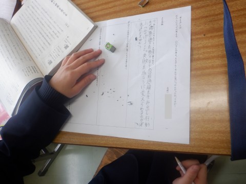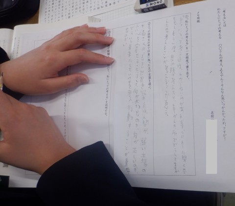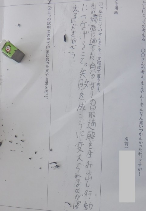 「その場面に適した自分なりの最適解を生み出し,行動につなげること。失敗を成功に変えられるのが『考える』だと思う」とあります。何度も書き直しているようで,これが今の時点での「最適解」なのですね。