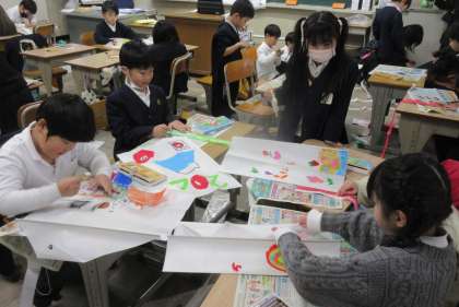 1組は、生活科で凧作りをしていました。ダルマ、富士山、大きなヘビ🐍どの凧もとっても素敵です✨みんなの凧が空を泳ぐのが楽しみだね♪