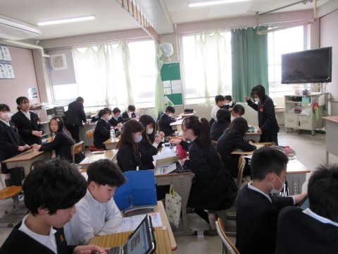 卒業式予行後の5年生の様子です。ホッとした表情で、穏やかに過ごしていました。