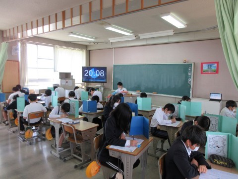2組は国語のテスト。みんな頑張っていました。