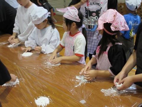 1年生から5年生はかき氷のトッピングの白玉団子作りです🍡
