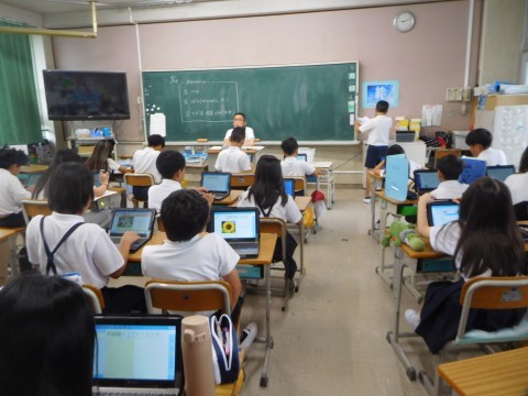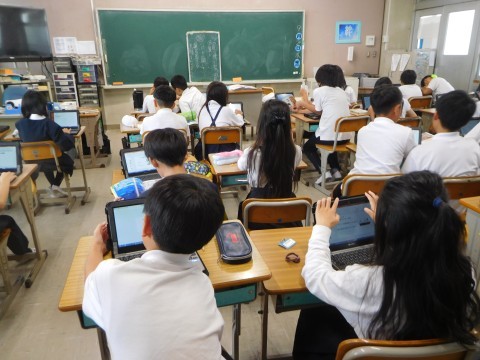 1組は理科です。オモチャカボチャについて調べてタブレットでまとめています。