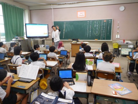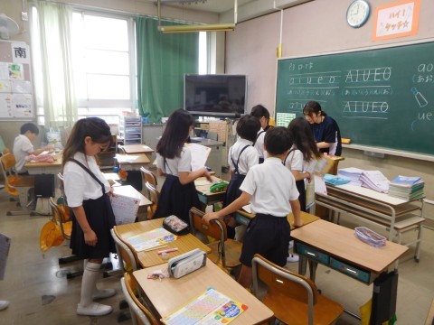1組はローマ字学習の始まりです。まずは「AIUEO」です。