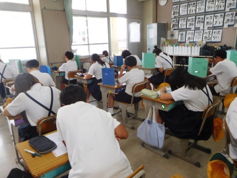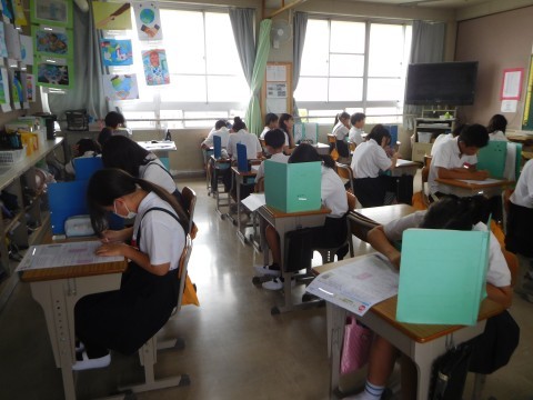 3組は国語「やまなし」のテストです。みんな真剣な様子で頑張っていましたよ。