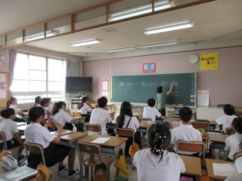 1組は算数「円の面積」に入る前に復習をしていました。