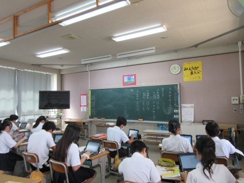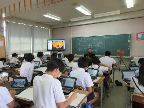 2組は理科。「月と太陽」の学習。月についてこちらもパソコンで調べ学習でした💻