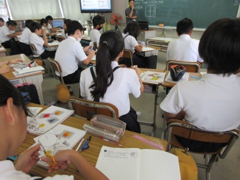 3組は算数。「円の面積」の学習。実際に円を切り取って求め方を考えています✂