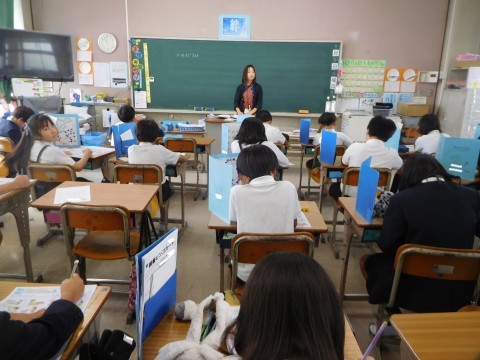 3組は家庭科です。「物を生かして住みやすく」のテストをしていましたよ。