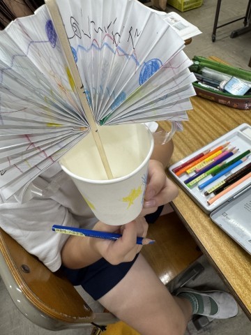 実際に説明書を読みながら、紙コップ花火を作成しました♪