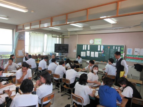 子どもたちが帰った後の様子です。授業を参観いただいた先生方で,討議会が開かれています。