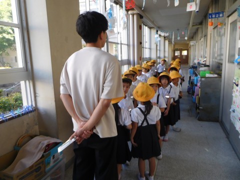 1年生はこれから6年生の連合運動会の練習を見学に行きます。