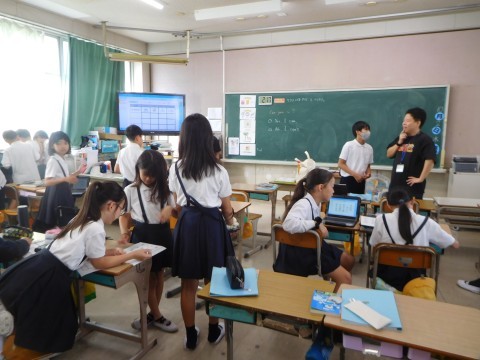 2組は外国語です。Can you~?を使った文での受け答えをペアを変えながら練習しています。