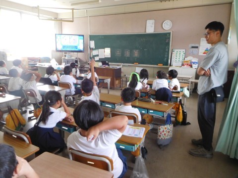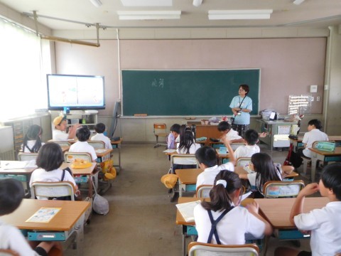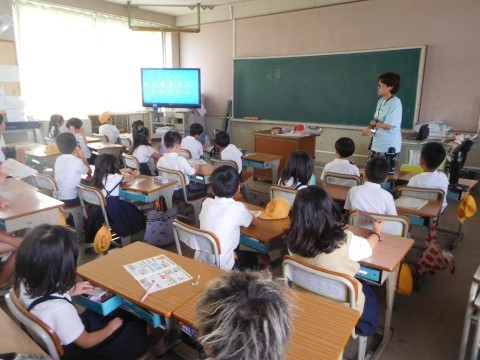 道路の歩き方や横断歩道の渡り方をDVDで見ています。