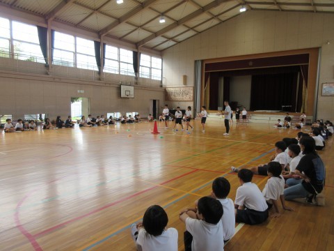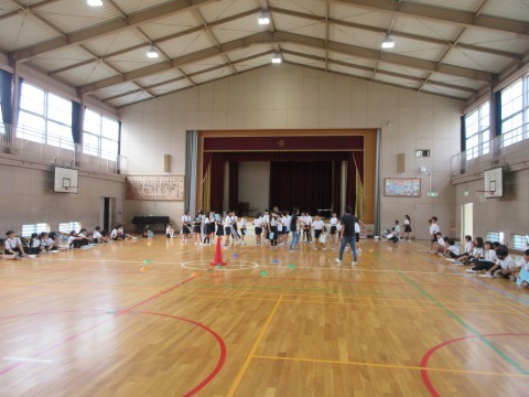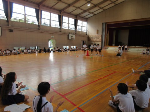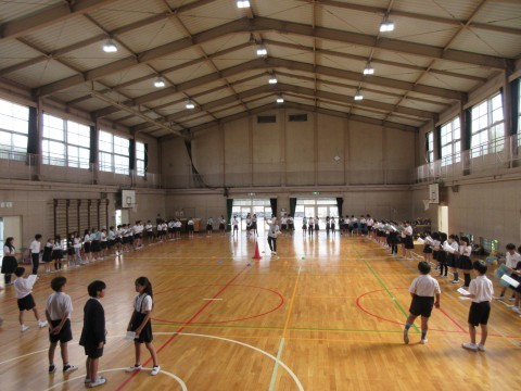 5年生が体育館で臨海学校に向けてキャンプファイヤーの練習をしていました🔥