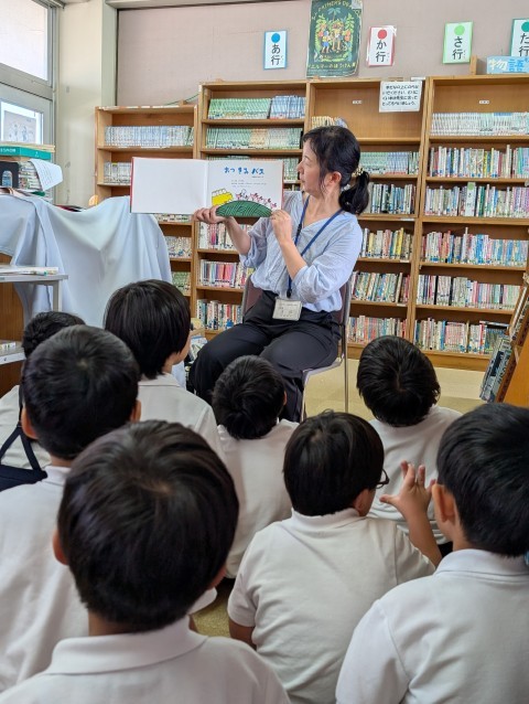 6日は,中秋の名月です。それにちなんで,「お月見バス」という本でした。すすきや,お団子も出てきました。さらに,給食でも「お月見献立」でした。本に載っていたように,6日は天気になって,きれいな月を見たいですね。