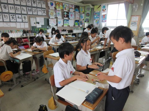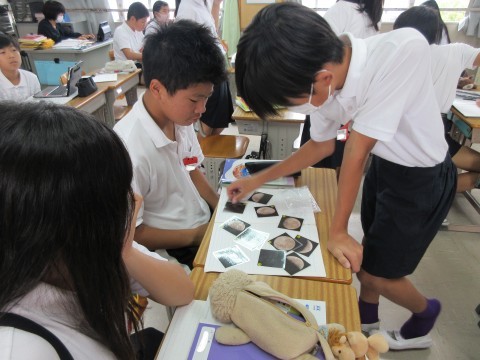 1組は理科。月の満ち欠けはどんな順番なんだろう?班で考えていました🌒