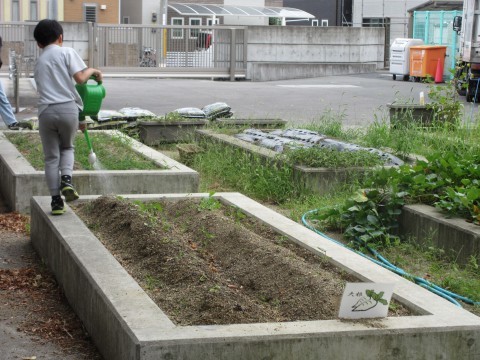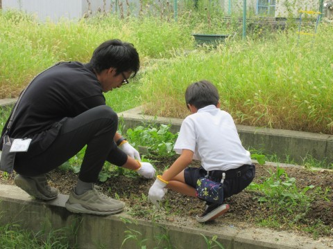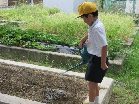 低学年チームは,水やりに草むしり,一生懸命畑のお手入れをしていました🥬勢い余って,お友だちの足にまでお水をあげちゃうかわいい一幕も♡