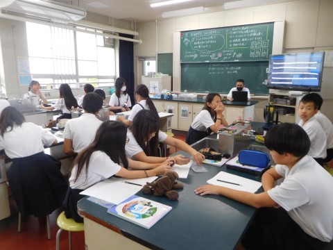 1組は理科です。月の見え方の変化について班で考える活動をしています。