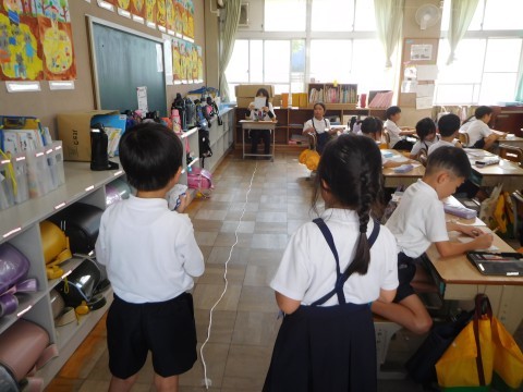 まずは教室で検査した後、見えにくかった場合は保健室に移動してもう一度検査です。