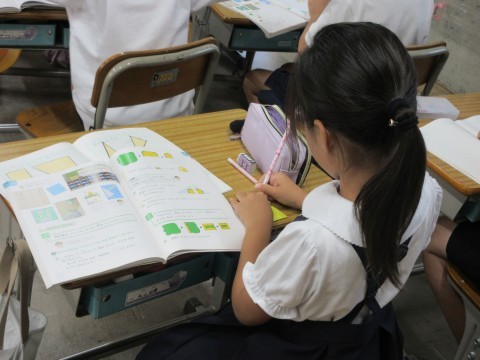 1組は算数。紙を折って直角作りに挑戦です📐うまくできたかな?