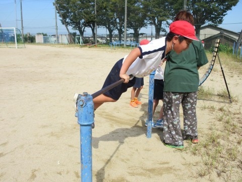 2組は体育で鉄棒の練習です。前回りをして,忍者のようにそ~っと着地ができるかな?☺