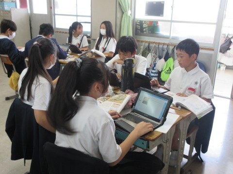 1組は社会。徳川家康の政治について調べ,まとめていました💻