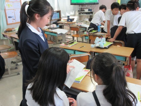 3組は理科。月と太陽のまとめプリントに取り組んでいました。友だちと教え合う姿が素敵です♡