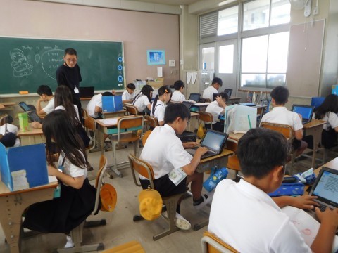 「ヒトのたんじょう」のテストができた人からタブレットでレポートを作成しています。