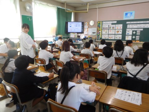 今日は、「朝ごはんの役割」について学習しています。一人一人がばっちり朝ごはんを一生懸命考えていましたよ。