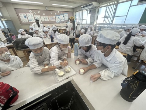 実際に豆腐を作っていただくことで,豆腐本来のおいしさを感じたようです。