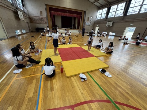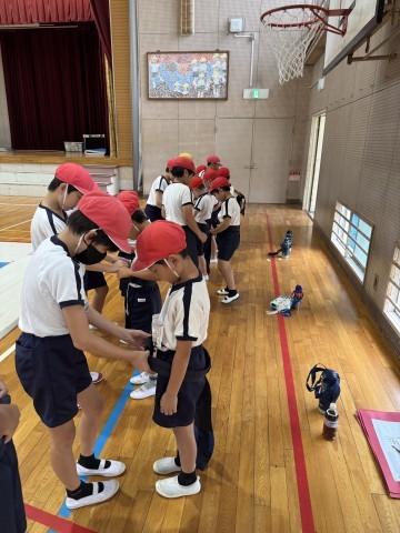 5年生にまわしのつけ外しや片付け方、相撲の取り組みのやり方など教えてもらいました♪