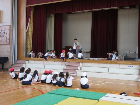 1組は体育。相撲の取り組み方を練習しています。「すり足」というものをどういった風にするのか?初めて教えてもらいました!使えそうですね❣