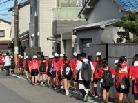 6年生は連合運動会の会場、新金岡競技場に向かってます