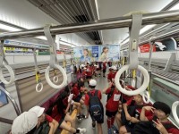 連合運動会への電車待ちます