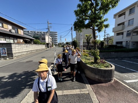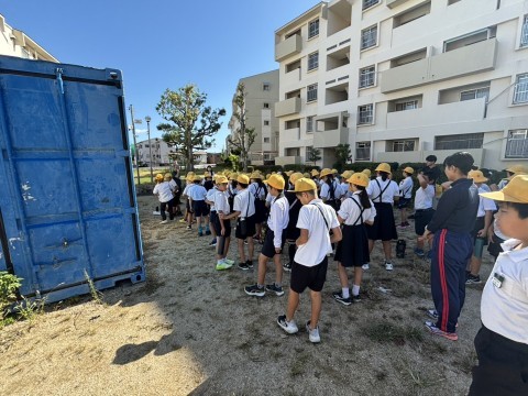 総合科で防災について学習をしています。本日2時間目に福田校区の町をたんけんしてみて、災害に備えてこんなことが起こった時にどうするかを考えて見学を行いました。学校についてからは災害倉庫と防災倉庫の中身を確認しました。