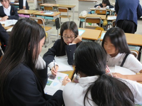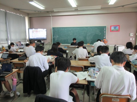 2組は社会。戦国時代から安土桃山時代への移り変わりの様子を,年表で確認していました。