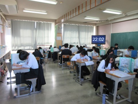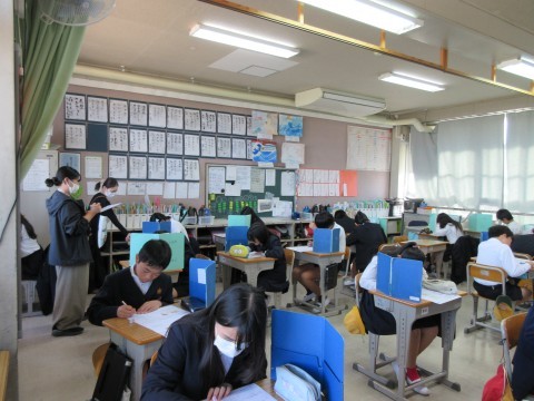 1組2組は算数「角柱と円柱の体積」のテスト中でした。1組では,薬剤師さんによる「照度」の検査も行われていました。