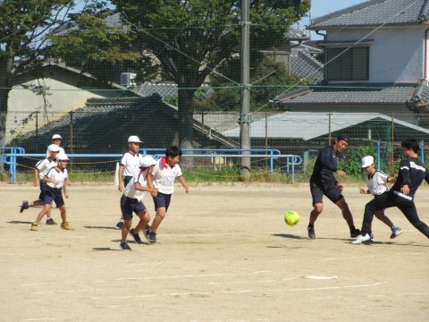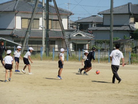10/23 5年生 セレッソサッカー体験② 公開日 2025/10/23 更新日 2025/10/23 5年 4時間目は男子のサッカー体験です。リフティングキャッチにドリブル鬼ごっこ⚽楽しいゲームを通してボールと仲良くなりました☺ 最後は5年生チームVSセレッソ&先生チームの対決です!!円陣を組んでやる気満々!なんと!先制点は5年生チーム!!応援席からも大歓声が上がりました✨ +7