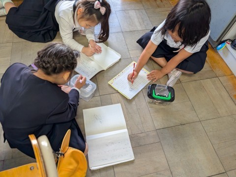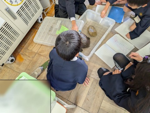 学校にどんな生き物がいるのかな。どんなものがあるのかなを調べました。そして,最後におうちの人に知らせようという流れの学習です。カメやバッタ,カマキリに,どんぐり,鯉・・と,たくさん見つけました。自分の知らせたいものを決めていきました!!次の時間から,もっと詳しく特徴などを捉えて描いていこうね!!