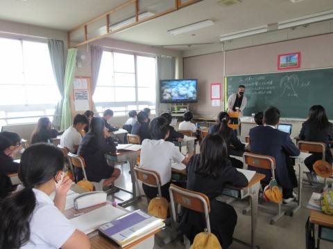 1組は理科。「地層のできる原因」についてビデオを視聴していました。